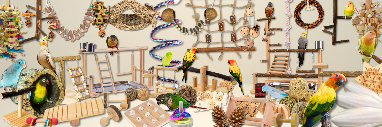 Stimulez l’intelligence et la vitalité de vos oiseaux avec notre collection de jouets spécialement conçus pour leur bien-être mental et physique. Dans la nature, les oiseaux explorent, jouent, picorent et grimpent — nos jouets reproduisent cet environnement enrichissant directement dans leur cage ou volière.